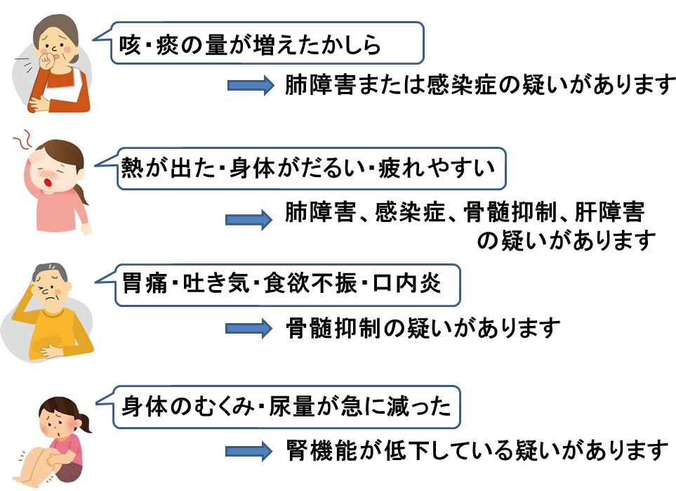 ※当院では、副作用についても患者さんに理解してもらうために、関節リウマチの治療が始まる前に、医師、看護師が患者さんへ服薬指導を行います。